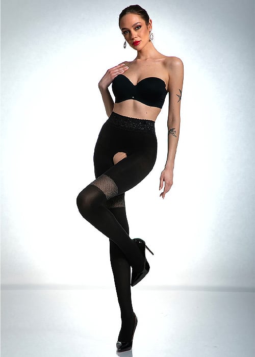 Amour Glamour is one of the most stunning new items from the Amour collection. It is glitzy, glamorous, and full of femininity. The simplest designs can often be the most head turning, and thanks to the band of sparkles on the lower thigh, these have just the right dose of interesting design to turn your head, but enough simplicity to stay versatile.