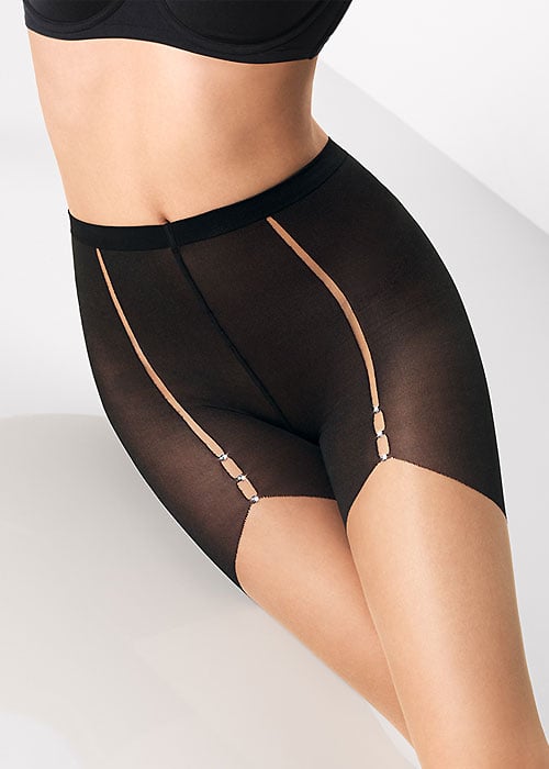 Tilda is a new step forward in the fashion convention of mock-suspender tights. This is a very popular area at the moment and yet Wolford, like always, don't look for the accepted and the safe to inspire them. They want to revolutionize the leg wear world instead. With Tilda, Wolford have created a darker area around the top of the design to look like an open bottom girdle, a classic choice for pin up enthusiasts. And at the front, the nude colours lines that intersect sharply up the front help shape your waist and hips, whilst the Swarovski elements bring a level of depth and dimension to the design that colour alone could never achieve. One of Wolford's most classic designs and a fitting homage to the world of vintage leg wear.