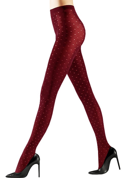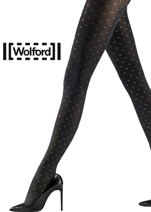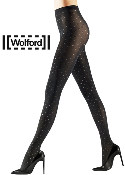 Alin is the perfect pair of patterned tights. Quite a boast, but one that Wolford deserves. It isn't the most astounding or most ostentatious, but each one is unique, because the pattern you see dotting the leg is not actually a printed pattern or a glued on motif. It is made up of a series of loose diamond knits; small gaps in the material rather than a set pattern or colour. Why does this make them the perfect pair of patterned tights? Simply because, they allow your skin tone to show through, so that no matter who wears them, they will be unique. If you have a tanned skin tone, you'll get a black and bronze look, whilst those with porcelain colouring with get a much more contrasting effect. No single pair will ever look the same when worn as the last.