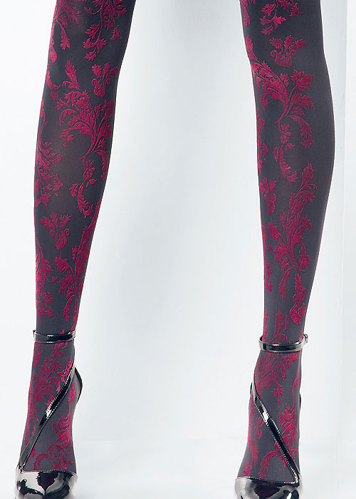 Giada captures the floral flourishes of Renaissance Europe in a lush red wine patterned tight. It brings the velvety motifs that are common on drapery and furniture of the period and recreates it in the world of clothing. Giada shimmers and captures the light in the room and the gazes as well. The result is a design that is as classic and antique as can be and yet thoroughly creative and modern.