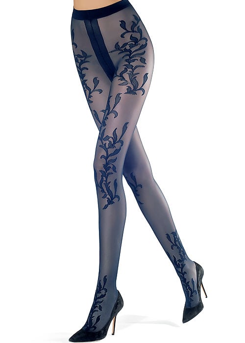 Their is no other pattern or motif as powerful and consistently popular as floral. Here, Oroblu have given us a less used but very interesting vine pattern, that too often plays second fiddle to traditional flowers. But that's no excuse for this beautiful motif to be left out. Mariel has used it to devastating effect and has created a leaf and vine pattern that is simply stunning.